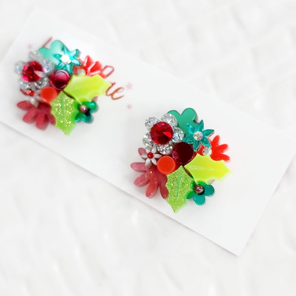 Christmas Flower Bouquet Stud Earrings - 001