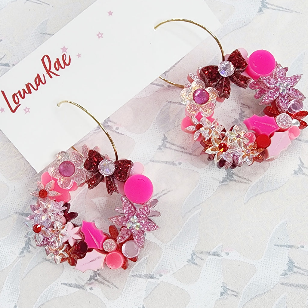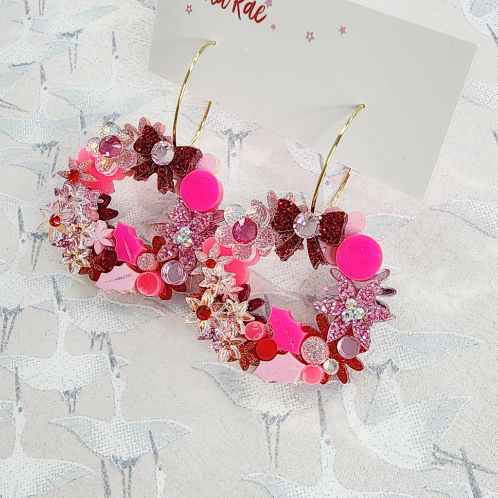 Christmas Flower Wreath Hoop Earrings