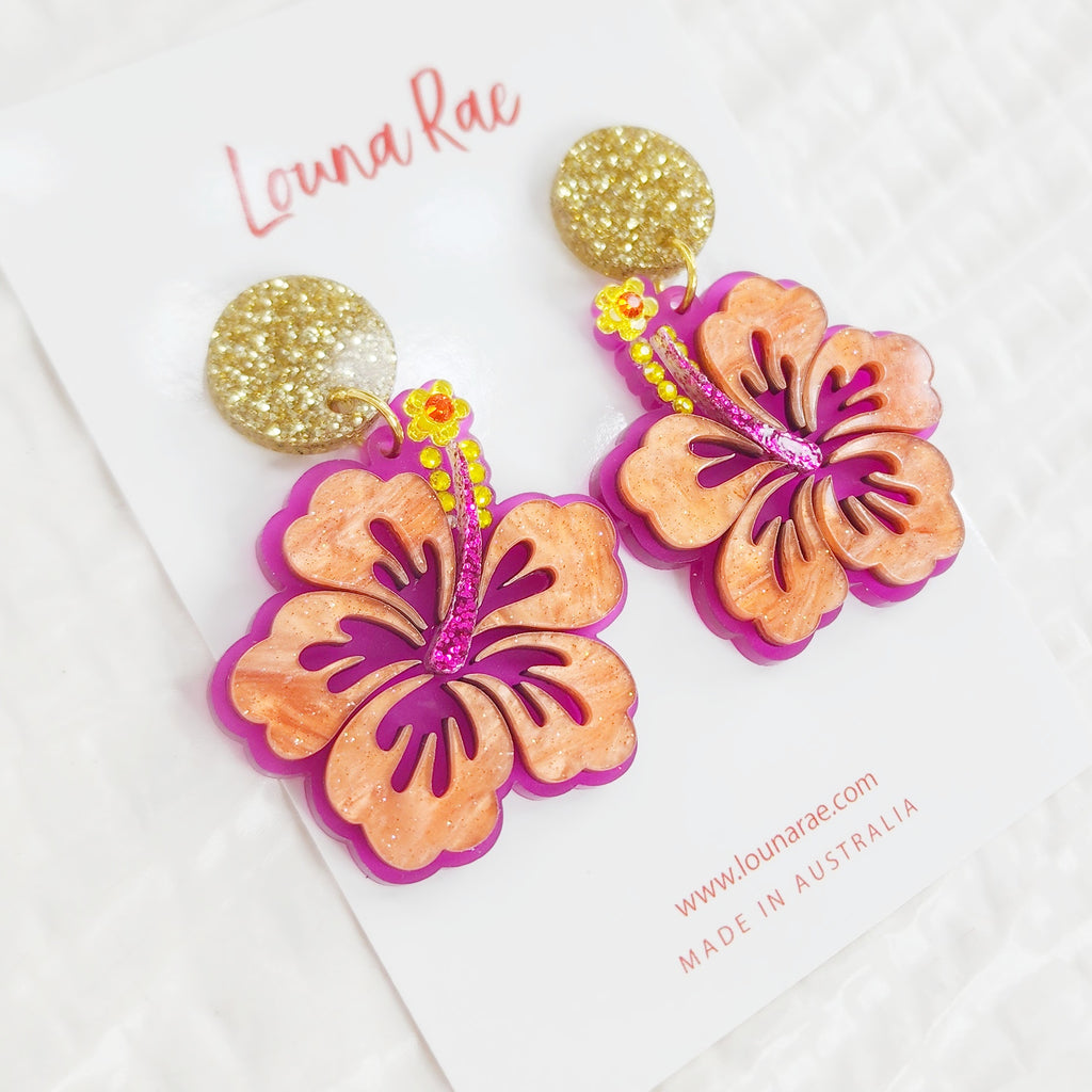 Hibiscus Dangle Earrings - 003