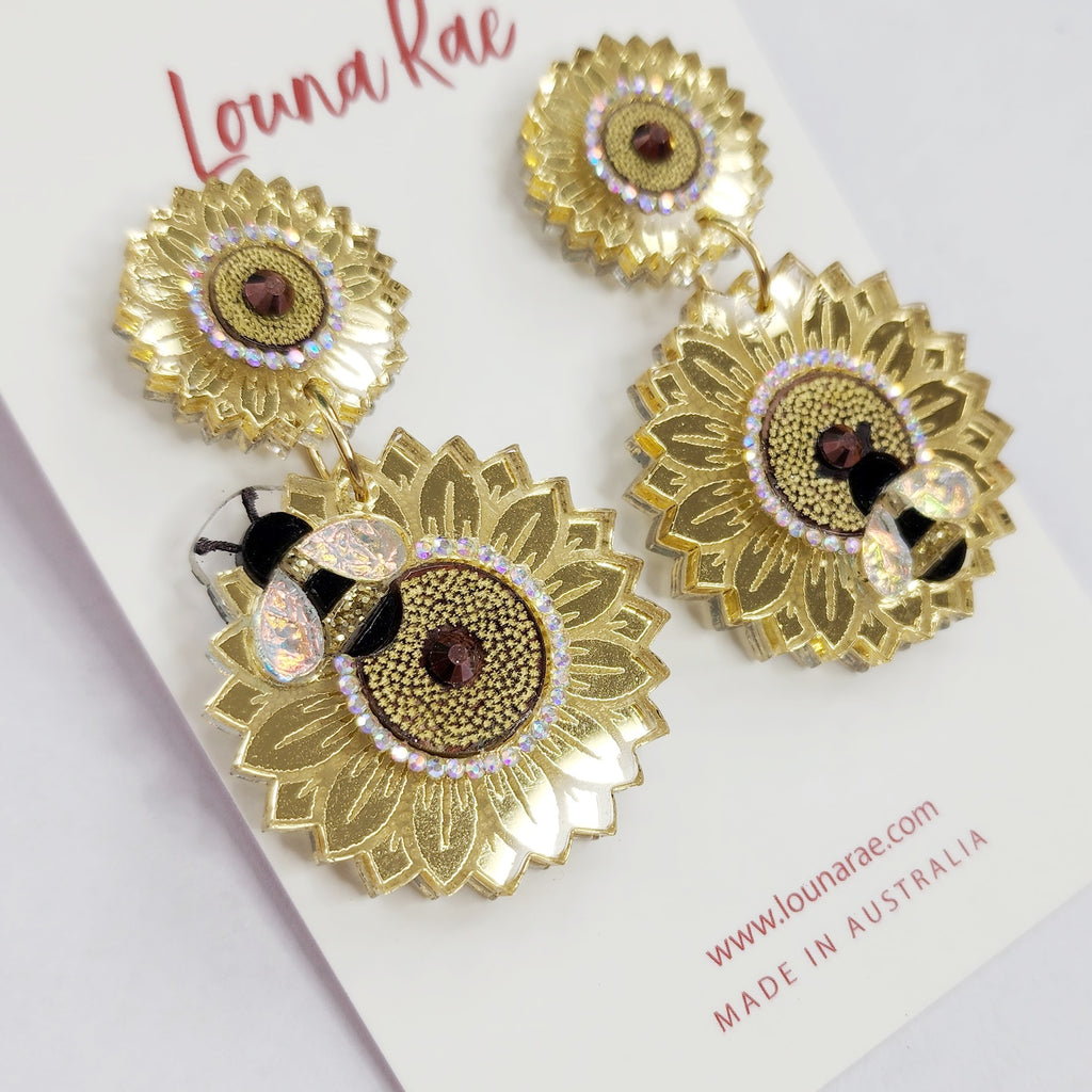 Sunflower and Bee Dangle Earrings - 002