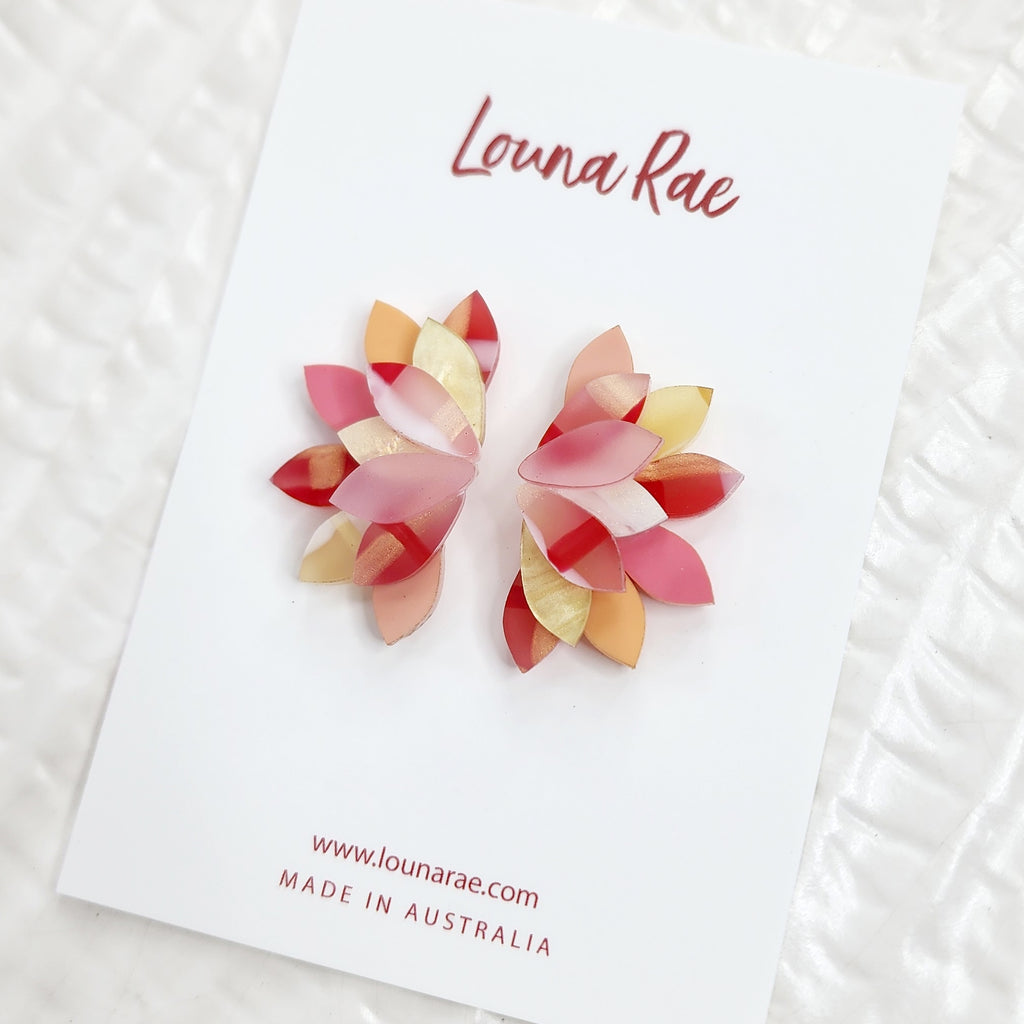 Beautiful statement earrings made of laser cut acrylic.