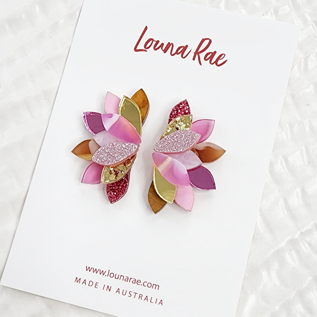 Beautiful statement earrings made of laser cut acrylic.