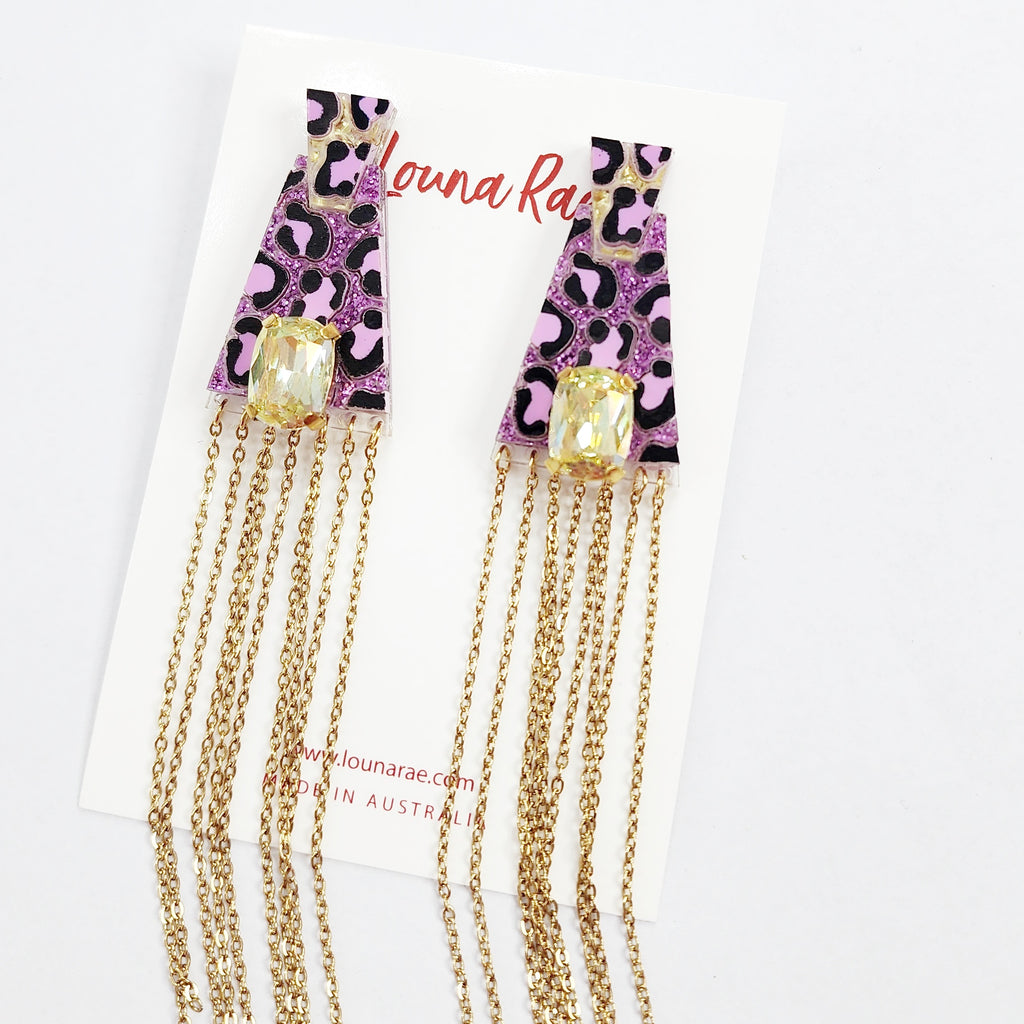 Beautiful statement earrings made of laser cut acrylic and Ion plating (IP) 304 Stainless steel cable chain.